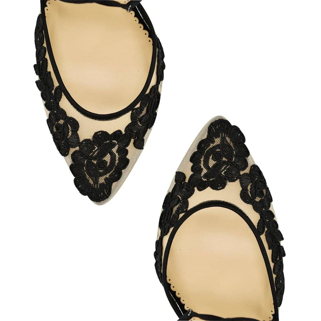 Anita Black sheer heels are a stunning selection from the Occasions collection. These black mesh heels feature a hand-sewn illusion nude mesh upper, graced with delicate black Alencon lace. This feminine, classic shoe is lined with black silk around nude mesh with a lovely tied bow at the heel cups. Add the cross ankle straps for a secure finish, and you’ve got yourself a beautiful pair of black mesh pumps.