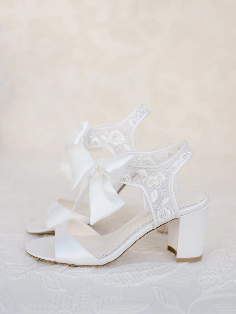 These block open toe heels are perfect for sunny days outside. A bouncy silk bow is tied at the front just above the toes. Camila open toe block heels feature refined lace to dress up any outdoor event with a touch of opulence.