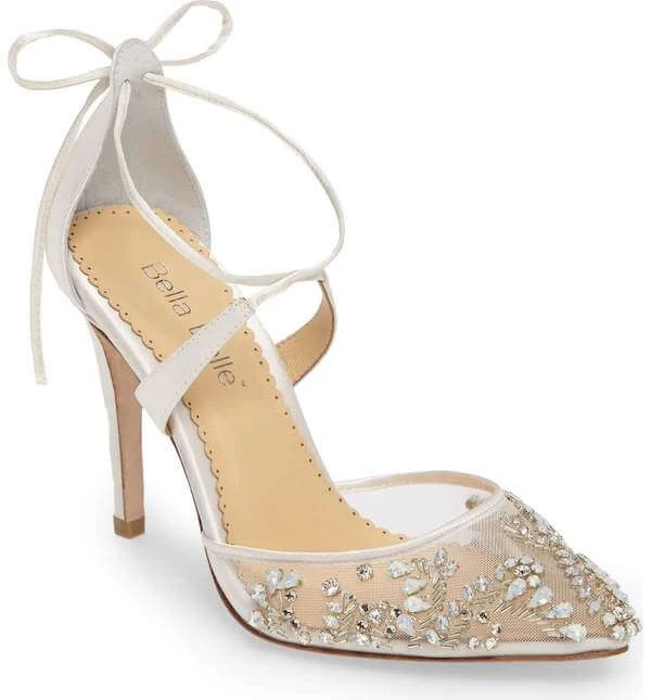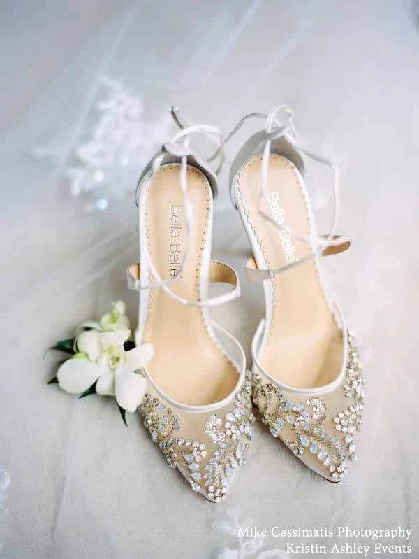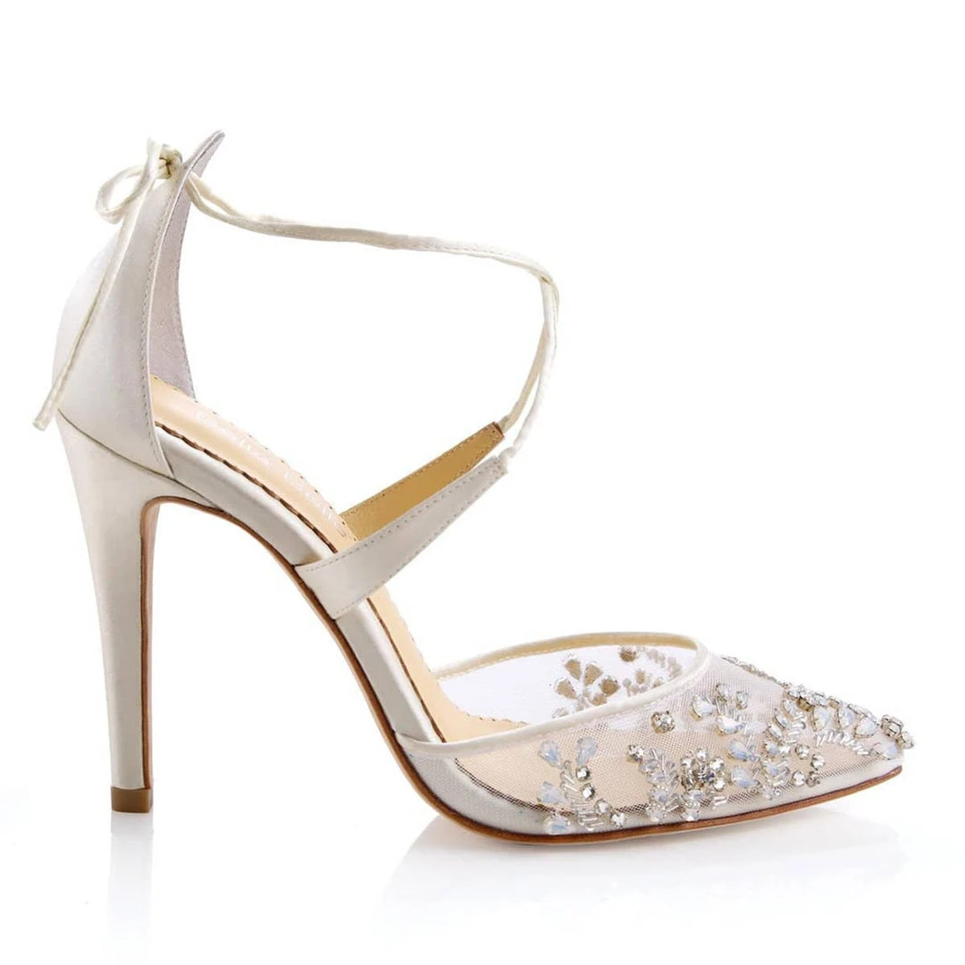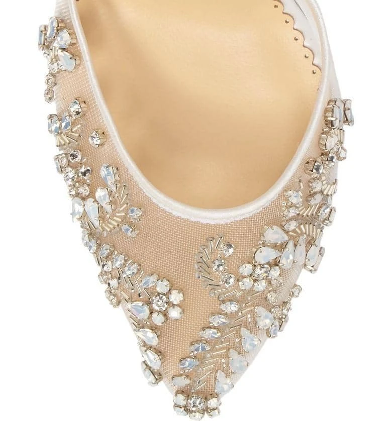 Florence Ivory is from the ‘Enchanted’ bridal collection. She is a crowd stunner. These crystal embellished heels are hand beaded with milky teardrop stones and beads that sparkle and shine bright like a diamond. Florence crystal strappy heels also have cross ankle straps and a lovely tied bow at the heel cup for a secure fitting. Florence wedding pumps with crystals are intricate in beading design, luxurious in crystals, and comfortable with extra padding for all-day comfort. These sexy wedding shoes are one pair you’ll instantly fall in love with.