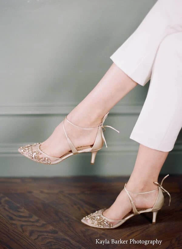 FRANCES GOLD Wedding Champagne Gold Kitten Heels With Crystals