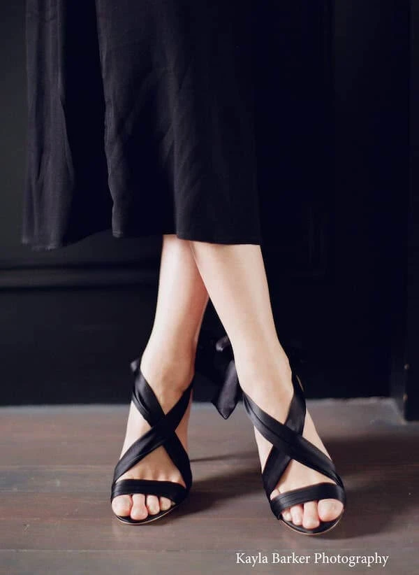 We simply can’t get enough of Kate, our lustrous black silk ribbon heels. The silk ribbons wrap around your feet in a criss-cross pattern. These ribbon tie heels are adorned with a gorgeous oversized bow at the back. Chic, sophisticated, and oh-so luxurious, Kate black ribbon heels are stylish and refined for any modern woman.